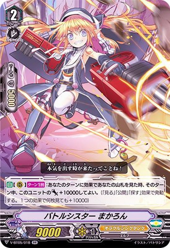 【自】【(R)】【ターン1回】:あなたのターンに効果であなたの山札を見た時、そのターン中、このユニットのパワー+10000してよい。(「見る」「公開」「探す」効果で発動する。1つの効果で何枚見ても+10000)