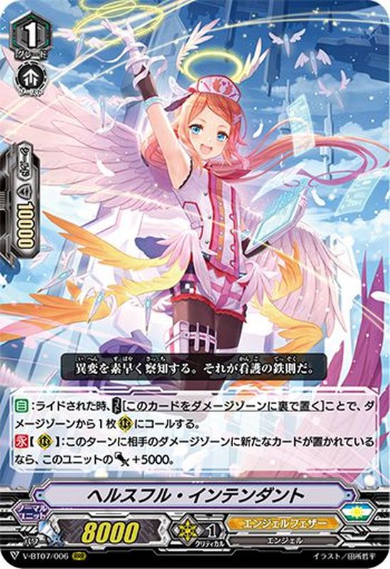 【自】:ライドされた時、【コスト】[このカードをダメージゾーンに裏で置く]ことで、ダメージゾーンから1枚(R)にコールする。【永】【(R)】:このターンに相手のダメージゾーンに新たなカードが置かれているなら、このユニットのパワー+5000。