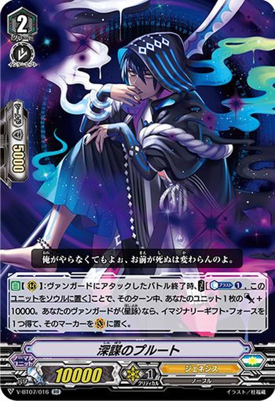 【自】【(R)】:ヴァンガードにアタックしたバトル終了時、【コスト】[【カウンターブラスト】(1),このユニットをソウルに置く]ことで、そのターン中、あなたのユニット1枚のパワー+10000。あなたのヴァンガードが〈星詠〉なら、イマジナリーギフト・フォースを1つ得て、そのマーカーを(V)に置く。