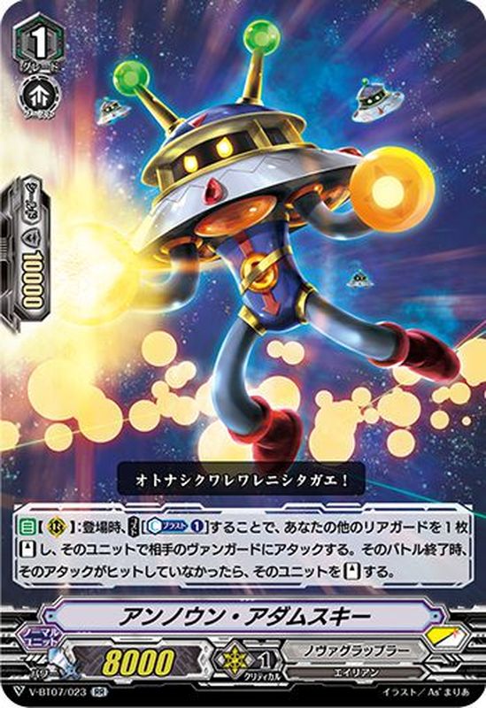 【自】【(R)】:登場時、【コスト】[【カウンターブラスト】(1)]することで、あなたの他のリアガードを1枚【スタンド】し、そのユニットで相手のヴァンガードにアタックする。そのバトル終了時、そのアタックがヒットしていなかったら、そのユニットを【スタンド】する。