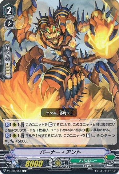 【起】【(R)】:【コスト】[このユニットを【レスト】する]ことで、このユニットと同じ縦列にいる相手のリアガードを1枚選び、ユニットのいない相手の(R)に移動させる。【起】【(R)】:【コスト】[手札を1枚捨てる]ことで、このユニットを【スタンド】し、そのターン中、パワー+5000。