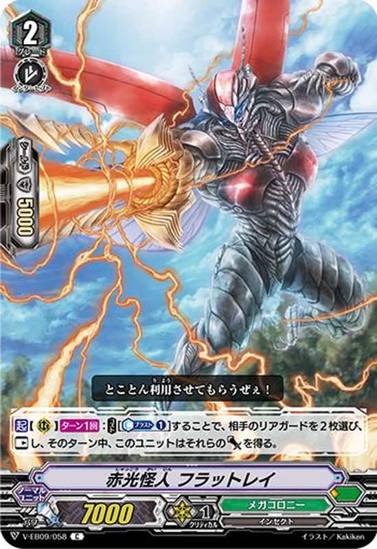 【起】【(R)】【ターン1回】:【コスト】[【カウンターブラスト】(1)]することで、相手のリアガードを2枚選び、【レスト】し、そのターン中、このユニットはそれらのパワーを得る。