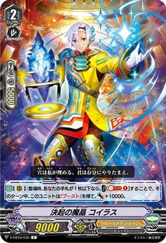 【自】【(R)】:登場時、あなたの手札が1枚以下なら、【コスト】[【ソウルブラスト】(1)]することで、そのターン中、このユニットは『ブースト』を得て、パワー+10000。