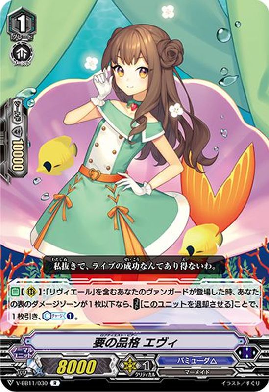 【自】【(R)】:「リヴィエール」を含むあなたのヴァンガードが登場した時、あなたの表のダメージゾーンが1枚以下なら、【コスト】[このユニットを退却させる]ことで、1枚引き、【カウンターチャージ】(1)。