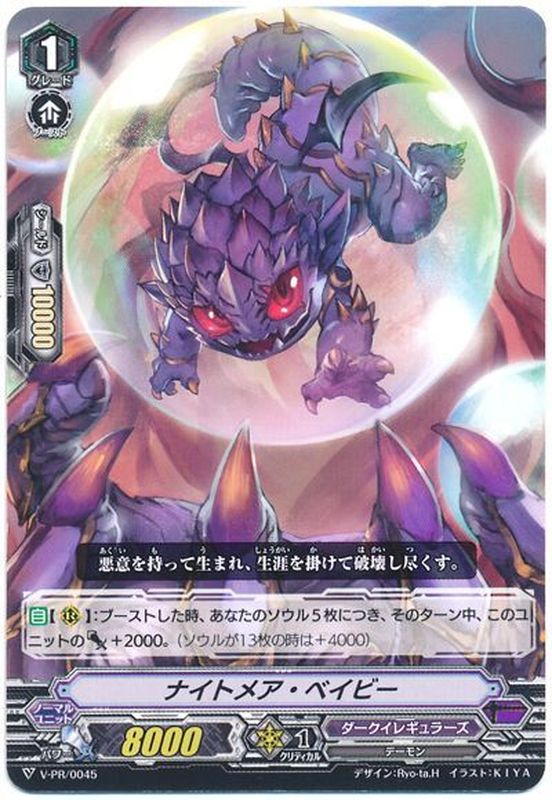 【自】【(R)】:ブーストした時、あなたのソウル5枚につき、そのターン中、このユニットのパワー+2000。(ソウルが13枚の時は+4000)