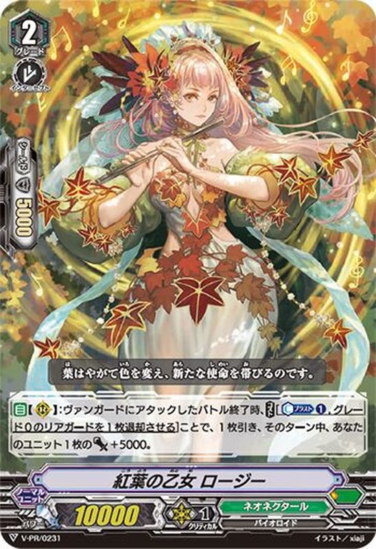 【自】【(R)】:ヴァンガードにアタックしたバトル終了時、【コスト】[【カウンターブラスト】(1),グレード0のリアガードを1枚退却させる]ことで、1枚引き、そのターン中、あなたのユニット1枚のパワー+5000。