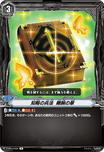 【コスト】[【カウンターブラスト】(3),【ソウルブラスト】(3)]3枚引き、そのターン中、あなたの前列のユニット3枚のパワー+10000。