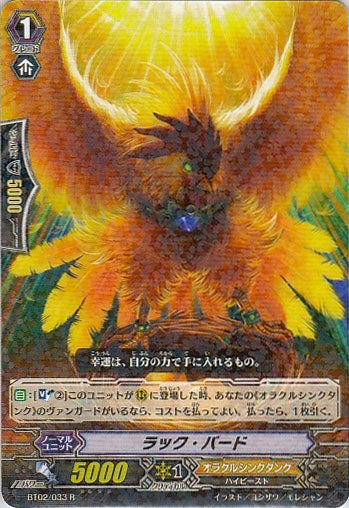 【自】:[【ソウルブラスト】(2)]このユニットが(R)に登場した時、あなたの《オラクルシンクタンク》のヴァンガードがいるなら、コストを払ってよい。払ったら、1枚引く。