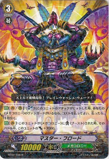 【自】【(V)/(R)】:[【ソウルブラスト】(3)]このユニットのアタックがヒットした時、あなたの《メガコロニー》のヴァンガードがいるなら、コストを払ってよい。払ったら、1枚引く。【自】【(V)】:このユニットが《メガコロニー》に【ブースト】された時、そのバトル中、このユニットのパワー+3000。