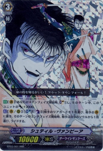 【自】【(V)】:あなたのメインフェイズ開始時、【ソウルチャージ】(1)し、そのターン中、このユニットのパワー+2000。【起】【(V)/(R)】:[【ソウルブラスト】(8),【カウンターブラスト】(5)]相手のリアガードを1枚選び、相手の(V)に置き、そのターンのエンドフェイズ開始時、相手は自分のソウルから1枚選び、ライドする。