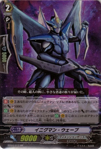 【永】【(V)】:あなたのソウルに「イニグマン・リプル」があるなら、このユニットのパワー+1000。【自】【(V)】:あなたのアタックステップ開始時、このユニットのパワーが14000以上なら、そのバトル中、このユニットは『【自】【(V)】:このユニットのアタックがヴァンガードにヒットした時、1枚引く。』を得る。
