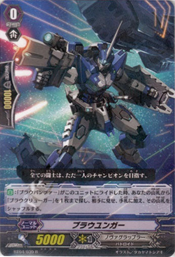 【自】:「ブラウパンツァー」がこのユニットにライドした時、あなたの山札から「ブラウクリューガー」を1枚まで探し、相手に見せ、手札に加え、その山札をシャッフルする。
