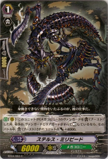 【自】【(R)】:このユニットが《メガコロニー》のヴァンガードを【ブースト】した時、相手の、ヴァンガードとリアガードがすべて【レスト】しているなら、そのバトル中、【ブースト】されたユニットのパワー+4000。
