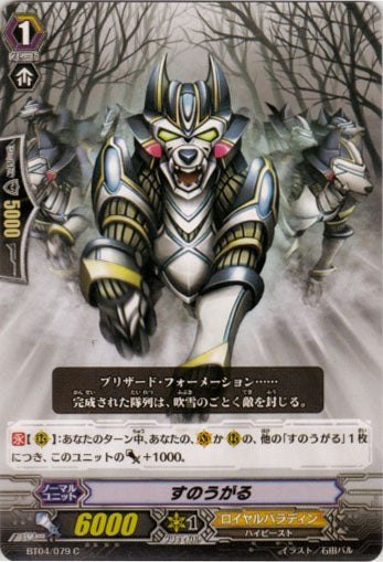 【永】【(R)】:あなたのターン中、あなたの、(V)か(R)の、他の「すのうがる」1枚につき、このユニットのパワー+1000。