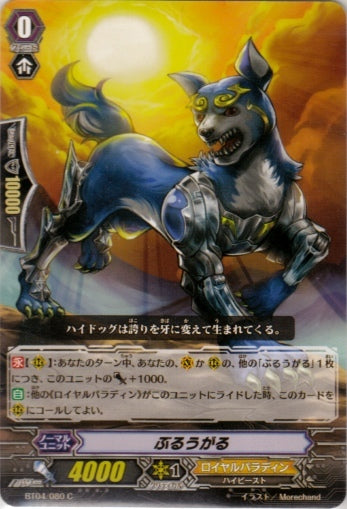 【永】【(R)】:あなたのターン中、あなたの、(V)か(R)の、他の「ぶるうがる」1枚につき、このユニットのパワー+1000。【自】:他の《ロイヤルパラディン》がこのユニットにライドした時、このカードを(R)にコールしてよい。