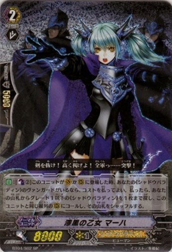 【自】:[【カウンターブラスト】(2)]このユニットが(V)か(R)に登場した時、あなたの《シャドウパラディン》のヴァンガードがいるなら、コストを払ってよい。払ったら、あなたの山札からグレード1以下の《シャドウパラディン》を1枚まで探し、このユニットと同じ縦列の(R)にコールし、その山札をシャッフルする。