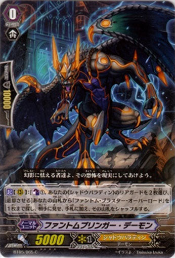 【起】【(R)】:[【カウンターブラスト】(1),あなたの《シャドウパラディン》のリアガードを2枚選び、退却させる]あなたの山札から「ファントム・ブラスター・オーバーロード」を1枚まで探し、相手に見せ、手札に加え、その山札をシャッフルする。