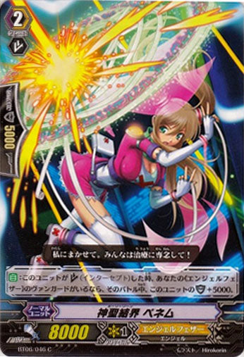 【自】:このユニットが【インターセプト】した時、あなたの《エンジェルフェザー》のヴァンガードがいるなら、そのバトル中、このユニットのシールド+5000。