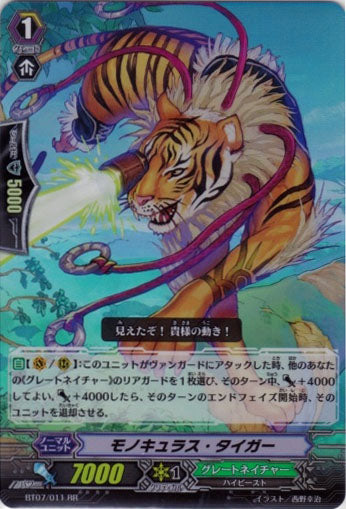 【自】【(V)/(R)】:このユニットがヴァンガードにアタックした時、他のあなたの《グレートネイチャー》のリアガードを1枚選び、そのターン中、パワー+4000してよい。パワー+4000したら、そのターンのエンドフェイズ開始時、そのユニットを退却させる。