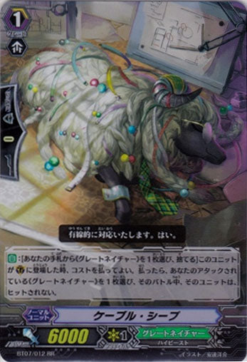 【永】:守護者(守護者はデッキに4枚までしか入れることができない)【自】:[あなたの手札から《グレートネイチャー》を1枚選び、捨てる]このユニットが(G)に登場した時、コストを払ってよい。払ったら、あなたのアタックされている《グレートネイチャー》を1枚選び、そのバトル中、そのユニットは、ヒットされない。