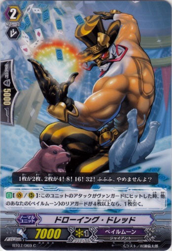 【自】【(V)/(R)】:このユニットのアタックがヴァンガードにヒットした時、他のあなたの《ペイルムーン》のリアガードが4枚以上なら、1枚引く。