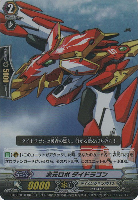 【自】【(R)】:このユニットがアタックした時、あなたのカード名に「次元ロボ」を含むヴァンガードがいるなら、そのバトル中、このユニットのパワー+3000。