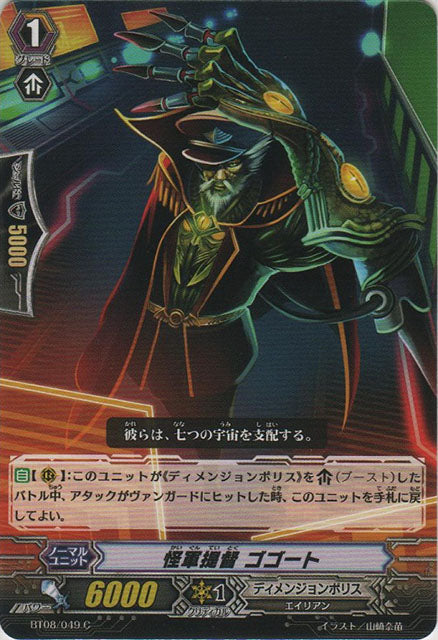 【自】【(R)】:このユニットが《ディメンジョンポリス》をブーストしたバトル中、アタックがヴァンガードにヒットした時、このユニットを手札に戻してよい。