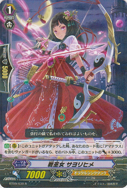【自】【(R)】:このユニットがアタックした時、あなたのカード名に「アマテラス」を含むヴァンガードがいるなら、そのバトル中、このユニットのパワー+3000。