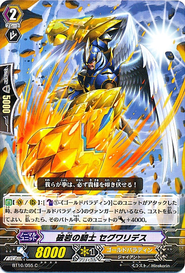 【自】【(V)/(R)】:[【カウンターブラスト】(1)-《ゴールドパラディン》]このユニットがアタックした時、あなたの《ゴールドパラディン》のヴァンガードがいるなら、コストを払ってよい。払ったら、そのバトル中、このユニットのパワー+4000。