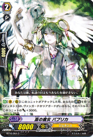 【自】【(V)/(R)】:このユニットがアタックした時、あなたの【リミットブレイク】(4)を持つ《ジェネシス》の、ヴァンガードかリアガードがいるなら、そのバトル中、このユニットのパワー+3000。