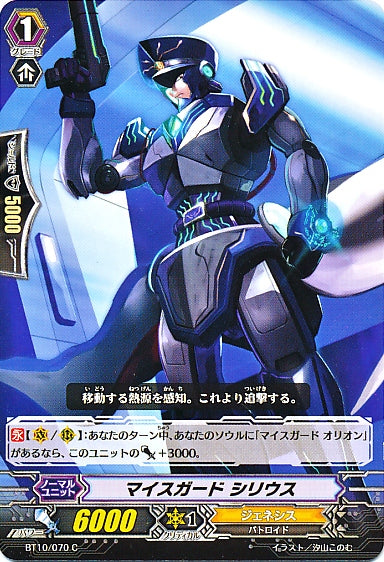 【永】【(V)/(R)】:あなたのターン中、あなたのソウルに「マイスガード オリオン」があるなら、このユニットのパワー+3000。