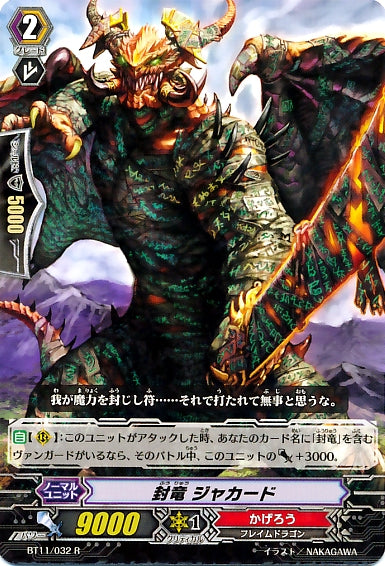 【自】【(R)】:このユニットがアタックした時、あなたのカード名に「封竜」を含むヴァンガードがいるなら、そのバトル中、このユニットのパワー+3000。