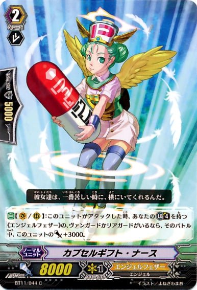 【自】【(V)/(R)】:このユニットがアタックした時、あなたの【リミットブレイク】(4)を持つ《エンジェルフェザー》の、ヴァンガードかリアガードがいるなら、そのバトル中、このユニットのパワー+3000。