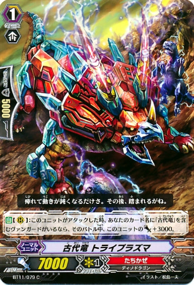 【自】【(R)】:このユニットがアタックした時、あなたのカード名に「古代竜」を含むヴァンガードがいるなら、そのバトル中、このユニットのパワー+3000。