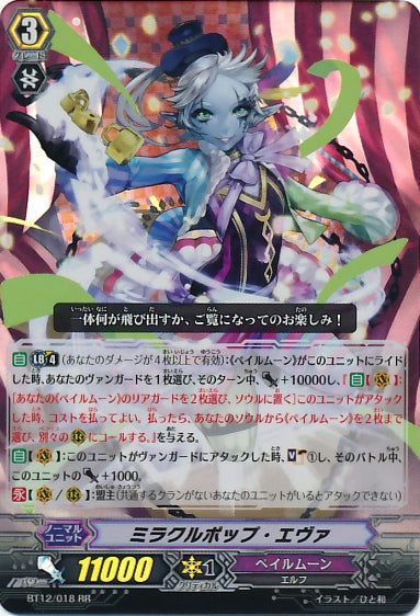 【自】【リミットブレイク】(4)(あなたのダメージが4枚以上で有効):《ペイルムーン》がこのユニットにライドした時、あなたのヴァンガードを1枚選び、そのターン中、パワー+10000し、『【自】【(V)】:[あなたの《ペイルムーン》のリアガードを2枚選び、ソウルに置く]このユニットがアタックした時、コストを払ってよい。払ったら、あなたのソウルから《ペイルムーン》を2枚まで選び、別々の(R)にコールする。』を与える。【自】【(V)】:このユニットがヴァンガードにアタックした時、【ソウルチャージ】(1)し、そのバトル中、このユニットのパワー+1000。【永】【(V)/(R)】:盟主(共通するクランがないあなたのユニットがいるとアタックできない)