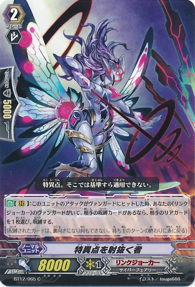 【自】【(R)】:このユニットのアタックがヴァンガードにヒットした時、あなたの《リンクジョーカー》のヴァンガードがいて、相手の呪縛(ロック)カードがあるなら、相手のリアガードを1枚選び、呪縛する。(呪縛されたカードは、裏向きになり何もできない。持ち主のターンの終わりに表に戻る)