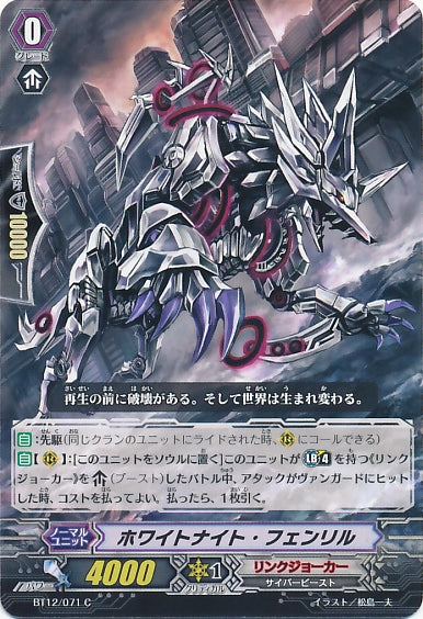 【自】:先駆(同じクランのユニットにライドされた時、(R)にコールできる)【自】【(R)】:[このユニットをソウルに置く]このユニットが【リミットブレイク】(4)を持つ《リンクジョーカー》を【ブースト】したバトル中、アタックがヴァンガードにヒットした時、コストを払ってよい。払ったら、1枚引く。