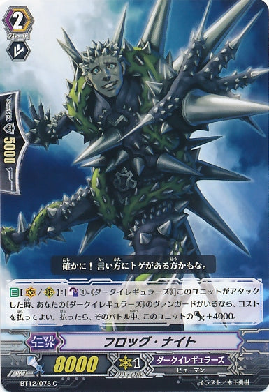 【自】【(V)/(R)】:[【カウンターブラスト】(1)-《ダークイレギュラーズ》]このユニットがアタックした時、あなたの《ダークイレギュラーズ》のヴァンガードがいるなら、コストを払ってよい。払ったら、そのバトル中、このユニットのパワー+4000。