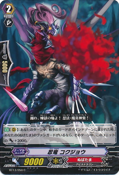 【自】【(R)】:あなたのターン中、相手のカードがバインドゾーンに置かれた時、あなたの《ぬばたま》のヴァンガードがいるなら、そのターン中、このユニットのパワー+2000。