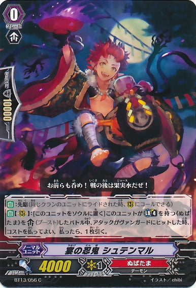 【自】:先駆(同じクランのユニットにライドされた時、(R)にコールできる)【自】【(R)】:[このユニットをソウルに置く]このユニットが【リミットブレイク】(4)を持つ《ぬばたま》を【ブースト】したバトル中、アタックがヴァンガードにヒットした時、コストを払ってよい。払ったら、1枚引く。