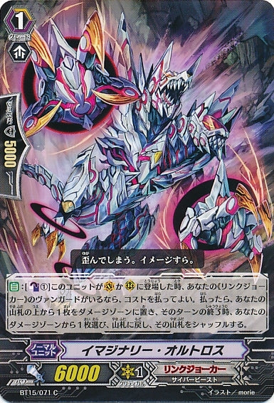 【自】:[【カウンターブラスト】(1)]このユニットが(V)か(R)に登場した時、あなたの《リンクジョーカー》のヴァンガードがいるなら、コストを払ってよい。払ったら、あなたの山札の上から1枚をダメージゾーンに置き、そのターンの終了時、あなたのダメージゾーンから1枚選び、山札に戻し、その山札をシャッフルする。