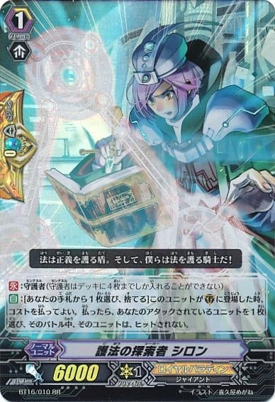【永】:守護者(守護者はデッキに4枚までしか入れることができない)【自】:[あなたの手札から1枚選び、捨てる]このユニットが(G)に登場した時、コストを払ってよい。払ったら、あなたのアタックされているユニットを1枚選び、そのバトル中、そのユニットは、ヒットされない。