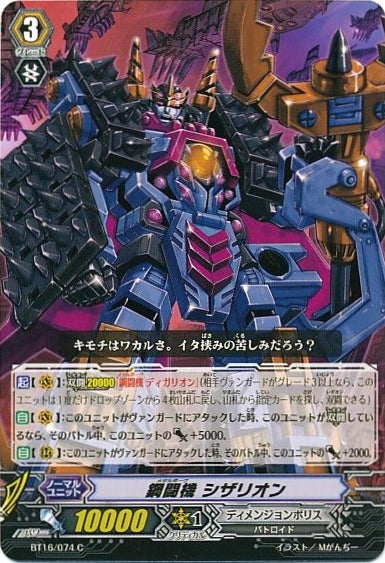 【起】【(V)】:【双闘20000】「鋼闘機 ディガリオン」(相手ヴァンガードがグレード3以上なら、このユニットは1度だけドロップゾーンから4枚山札に戻し、山札から指定カードを探し、双闘できる)【自】【(V)】:このユニットがヴァンガードにアタックした時、このユニットが【双闘】しているなら、そのバトル中、このユニットのパワー+5000。【自】【(R)】:このユニットがヴァンガードにアタックした時、そのバトル中、このユニットのパワー+2000。