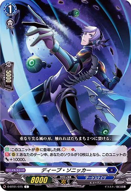 【自】:このユニットが(V)に登場した時、【ソウルチャージ】(1)。【永】【(R)】:あなたのターン中、あなたのソウルが10枚以上なら、このユニットのパワー+10000。