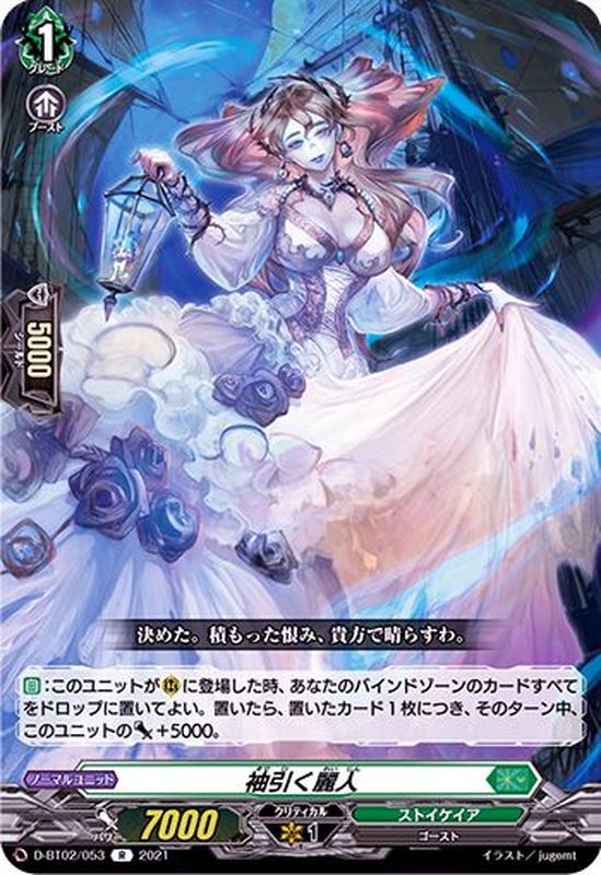 【自】:このユニットが(R)に登場した時、あなたのバインドゾーンのカードすべてをドロップに置いてよい。置いたら、置いたカード1枚につき、そのターン中、このユニットのパワー+5000。