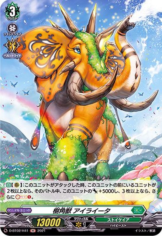 【自】【(R)】:このユニットがアタックした時、このユニットの前にいるユニットが2枚以上なら、そのバトル中、このユニットのパワー+5000し、3枚以上なら、さらに【ソウルチャージ】(1)。