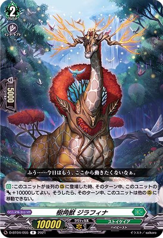 【自】:このユニットが後列の(R)に登場した時、そのターン中、このユニットのパワー+10000してよい。そうしたら、そのターン中、このユニットは他の(R)に移動できない。