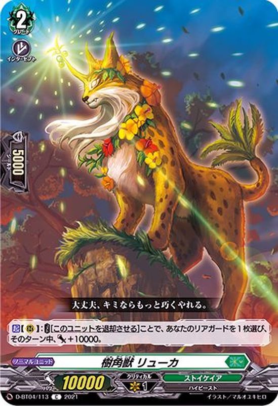 【起】【(R)】:【コスト】[このユニットを退却させる]ことで、あなたのリアガードを1枚選び、そのターン中、パワー+10000。