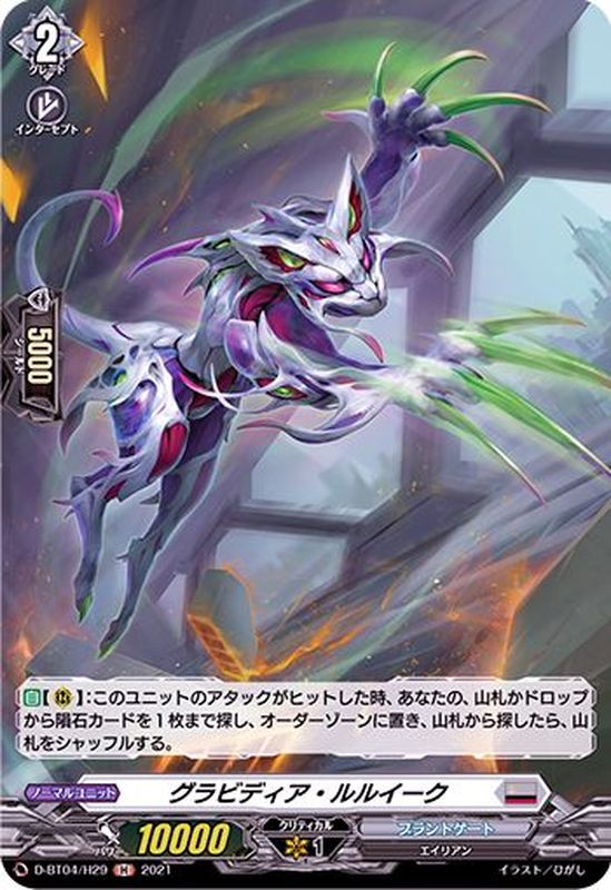 【自】【(R)】:このユニットのアタックがヒットした時、あなたの、山札かドロップから隕石カードを1枚まで探し、オーダーゾーンに置き、山札から探したら、山札をシャッフルする。