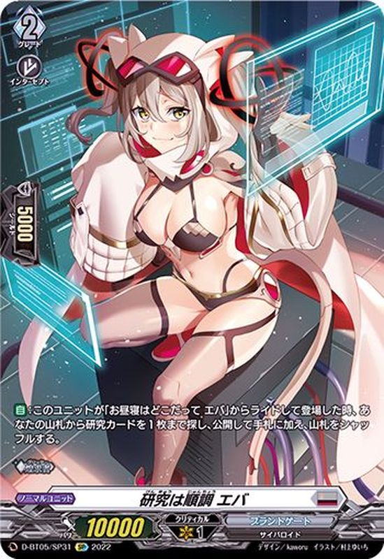【自】:このユニットが「お昼寝はどこだって エバ」からライドして登場した時、あなたの山札から研究カードを1枚まで探し、公開して手札に加え、山札をシャッフルする。【煌求者】